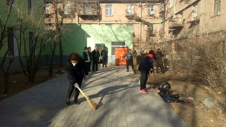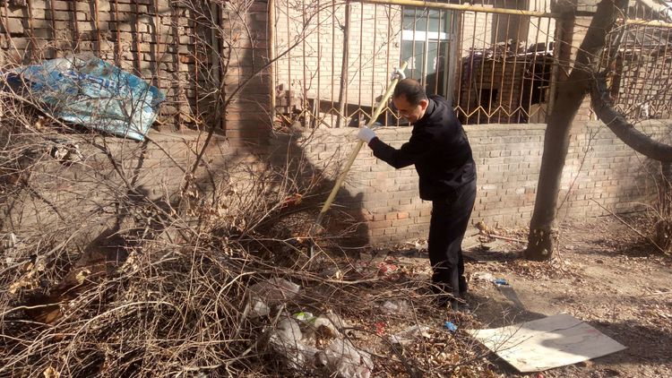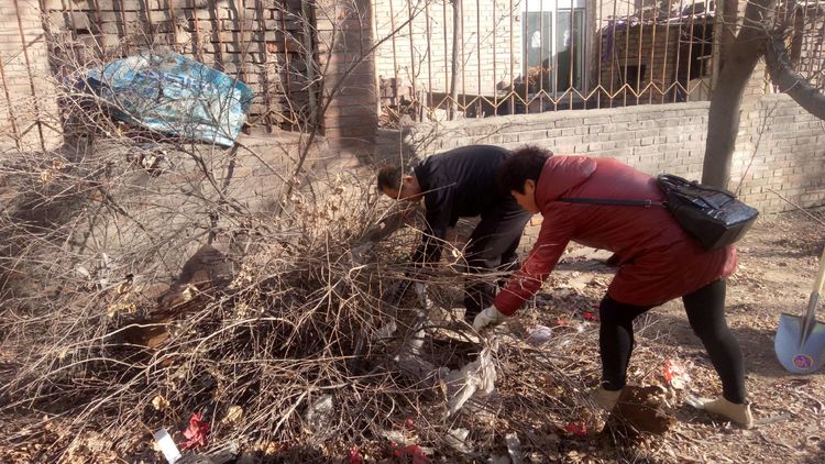 看安馨養(yǎng)老服務中心后院里參加清掃衛(wèi)生的青年團員志愿們拿著笤帚、鐵鍬、鋸等用具。開始了緊張的忙碌,鋸枯樹枝的,清掃院落的,清倒垃圾的,大家分工合作,經過了一上午的清掃整理,整個院落更加的干凈整潔了。