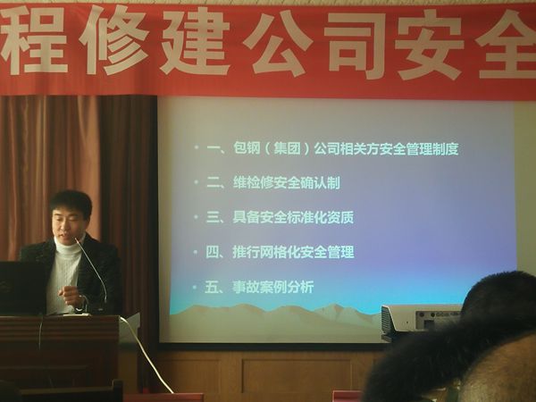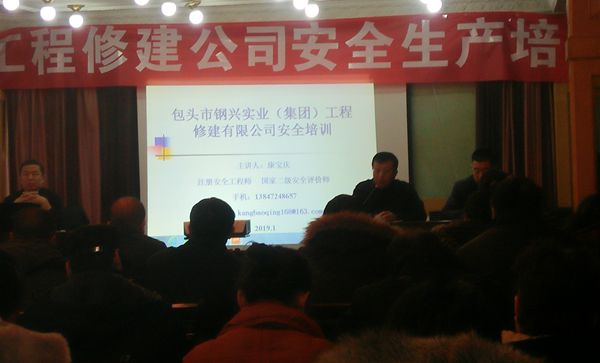 于2019年1月9上午8點(diǎn),集團(tuán)公司聯(lián)合工程修建公司進(jìn)行為期一天的安全培訓(xùn),特邀請(qǐng)包鋼集團(tuán)公司生產(chǎn)部張鋼和康寶慶(注冊(cè)安全工程師 二級(jí)安全評(píng)價(jià)師)為各單位安全員進(jìn)行安全培訓(xùn)。